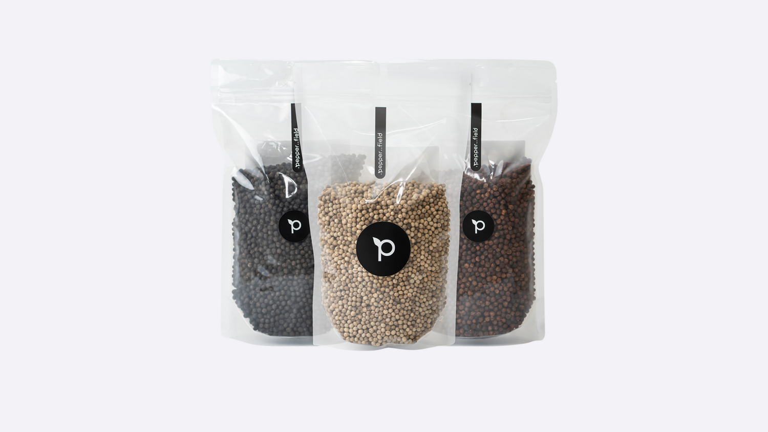 Thanks to that, the peppercorns even after the bag is opened retain their authentic taste and aroma of Kampot pepper. After emptying, you can also, as part of sustainability, upcycle and continue to use them in a variety of other ways. We pack the pepper in reclosable bags with a capacity of 20 to 1000 grams. Each Package also includes a brochure that brings you the story of the best pepper in the world and introduces you to the world of .pepper..field.