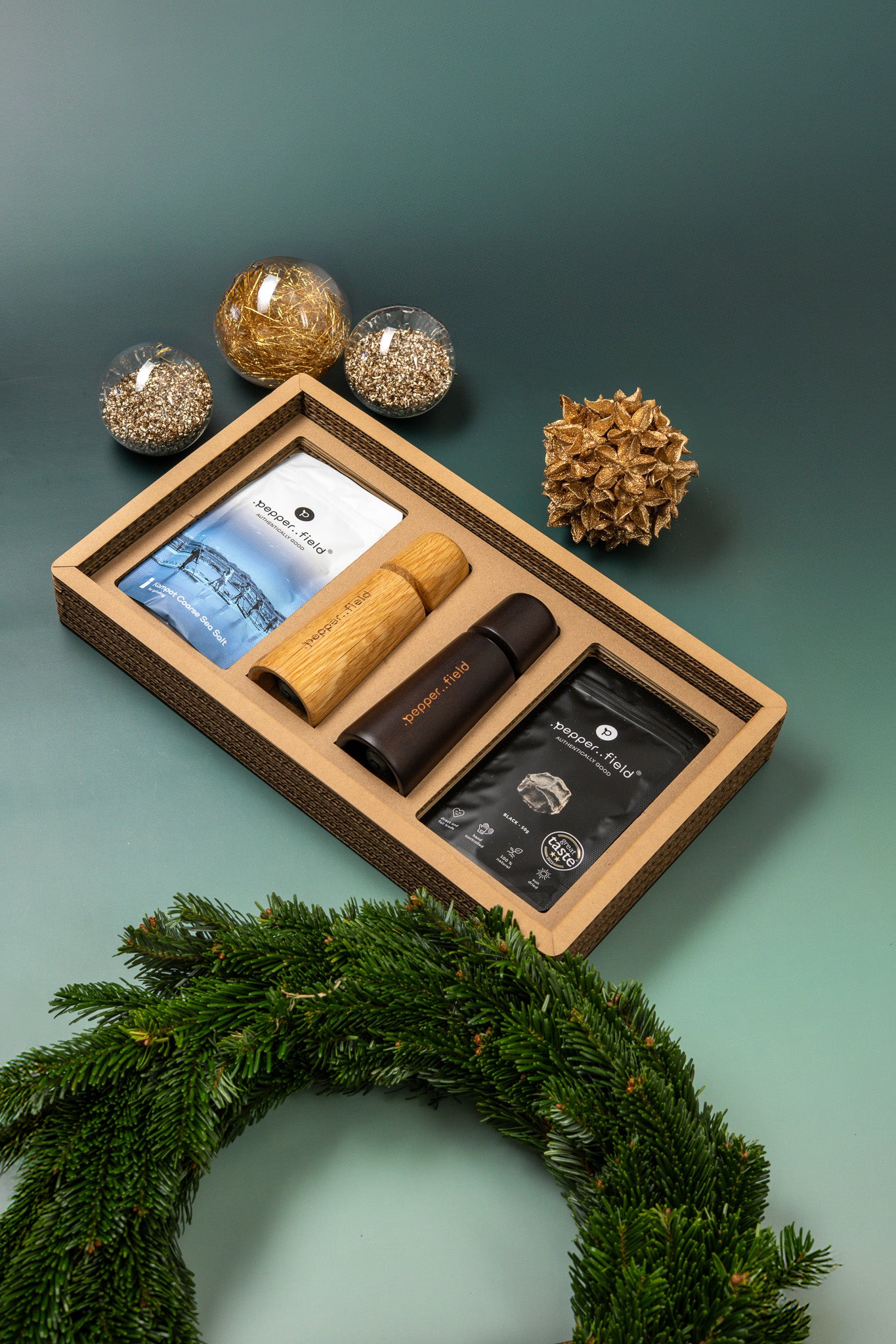 With us, you will find plenty of gift Package with Kampot m pepper and Kampot salt of premium quality. Natural, 100% quality and always locally sourced, we also select the materials that make up the gift sets. Don't worry about wrapping. Gift sets for you are assembled by hand, sensitively and wrapped decoratively with maximum care.