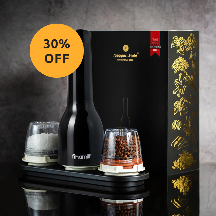 FinaMill® is a Grinder with replaceable containers. Just press one button – and you have perfectly ground fresh Kampot pepper, salt, or dozens of other ingredients within seconds.