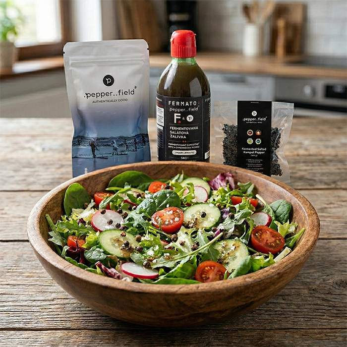·   40 g fermentovaného Kampotského pepře